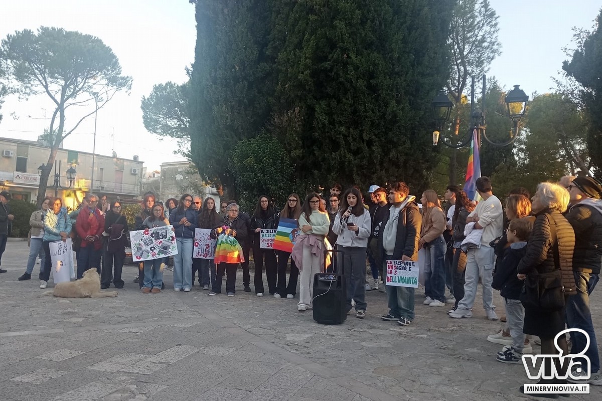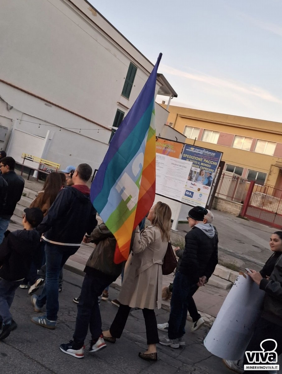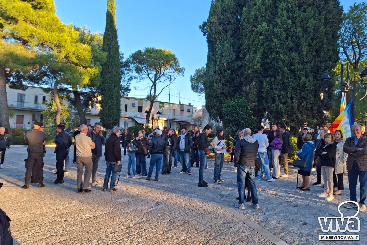 La manifestazione si è svolta in modo pacifico e sereno, accompagnata da una musica di sottofondo che ha contribuito a creare un'atmosfera tranquilla. È stata accolta con rispetto e partecipazione dai cittadini minervinesi lungo il percorso che si è snodato per le vie del centro, da Villa Faro fino a piazza Aldo Moro.