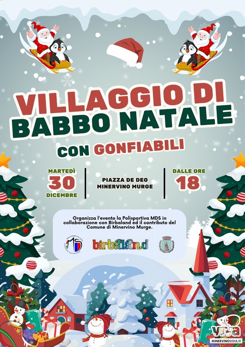 Il 30 dicembre Minervino Murge si trasformerà in un luogo magico per grandi e piccini grazie al "Villaggio di Babbo Natale", un evento organizzato dalla Polisportiva MDS, in collaborazione con Birbaland e con il prezioso contributo economico del Comune di Minervino Murge.